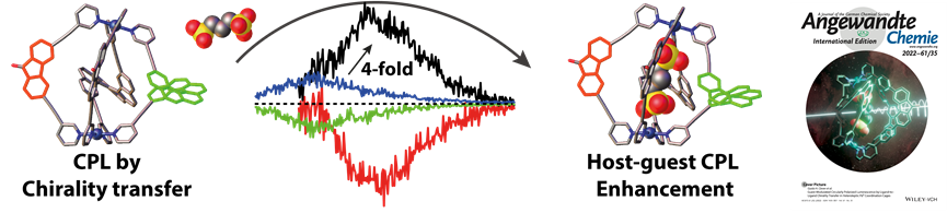16. K. Wu‡, J. Tessarolo‡, A. Baksi, G. H. Clever*, Guest-modulated Circularly Polarized Luminescence by Ligand-to-Ligand Chirality Transfer in Heteroleptic Pd(II) Coordination Cages, Angew. Chem. Int. Ed. 2022, 61, e202205725. (Hot paper, Front Cover)
