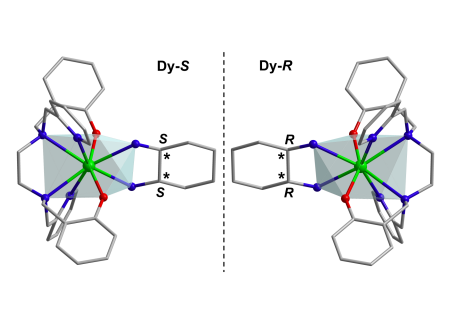近期,该团队基于高性能 SMM 构筑单元 [Dy(bbpen)]⁺ 与手性环己二胺配体首次合成了纯手性配合物对映体[Dy(bbpen)(S,S/R,R-chxn)](BPh4) (Dy-S/R)(图2)。