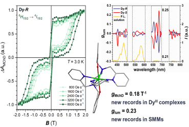 图 1. 兼具圆偏振发光和磁-手性二色性的手性镝单分子磁体