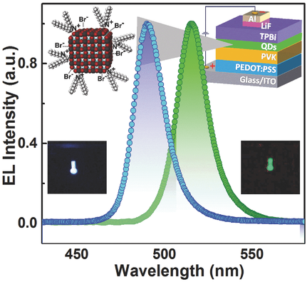 Our work on surface-crosslinkable perovskite quantum dot LEDs was recently published in Advanced Materials.