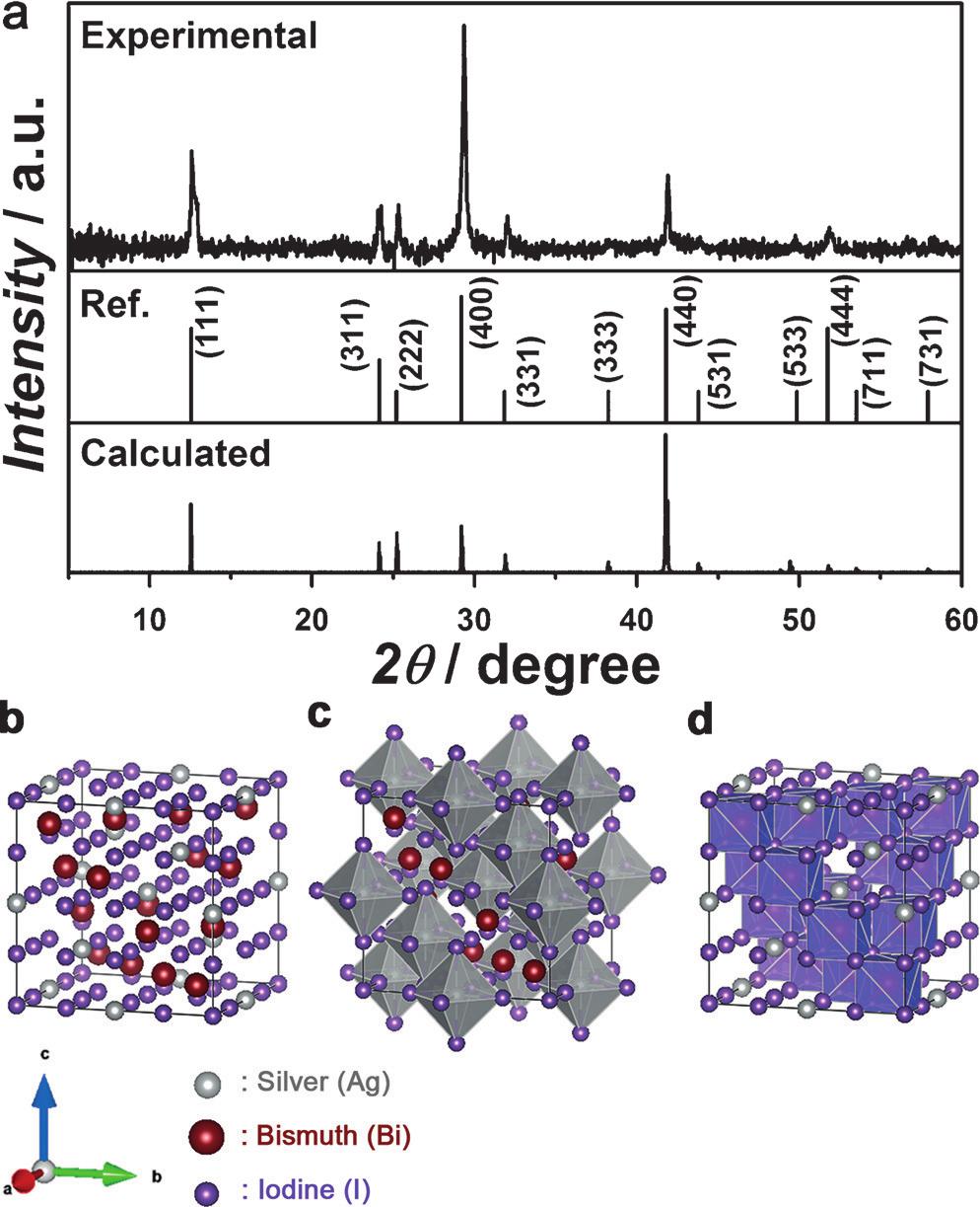 30. J. Pan, L. N. Quan, Y. Zhao, W. Peng, S. P. Sarmah, M. Yuan, B. Murali, L. Sinatra, N. Alyami, J. Liu, E. Yassitepe, Z. Yang, O. Voznyy, R. Comin, O. F. Mohammed, Z. Lu, O. Bakr, E. H. Sargent. "Pure Cubic-Phase Hybrid Iodobismuthates AgBi2I7 for Thin-Film Photovoltaics." Adv. Mater., 2016, 28, 8718–8725. DOI: 10.1002/adma.201600784.