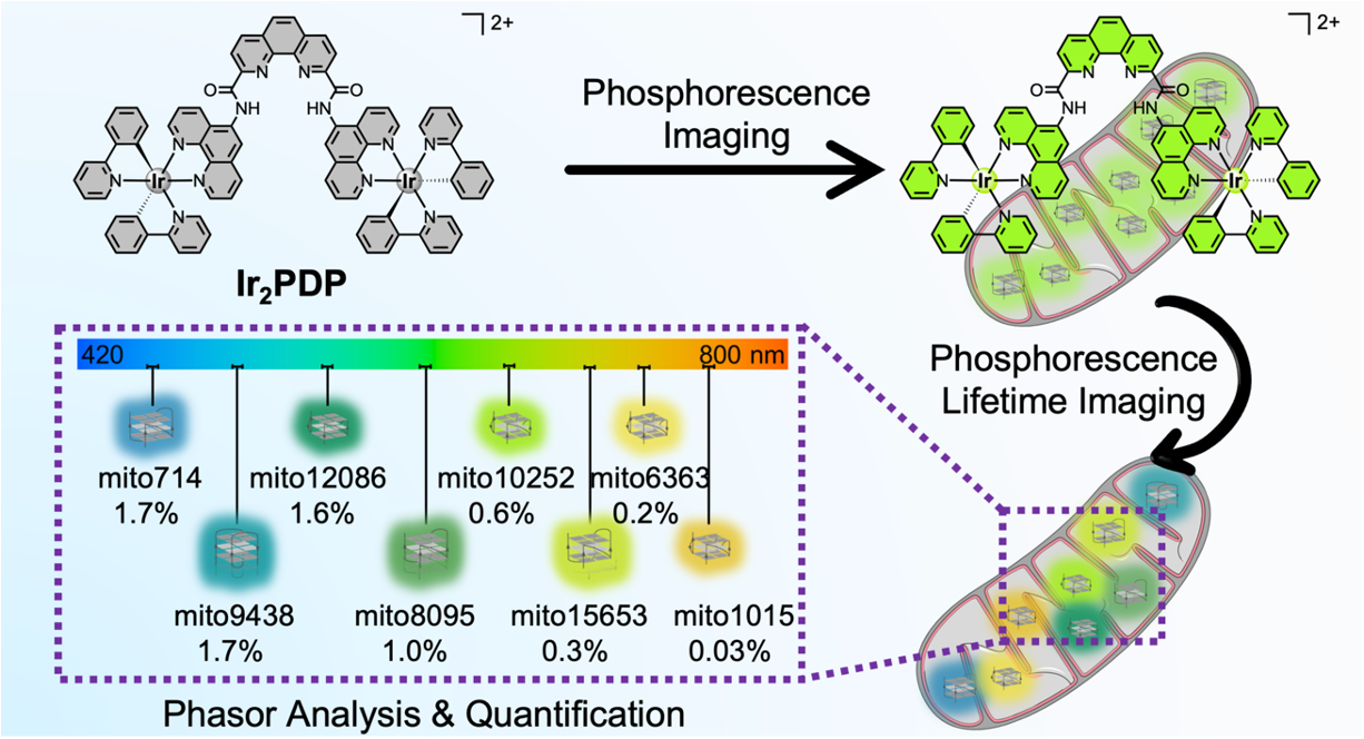 图1.Ir2PDP作为磷光寿命探针鉴定和量化不同mitoG4 DNA的示意图。