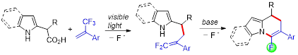 Synthesis of 5‑Fluoro-dihydroindolizines from Pyrrole-2-acetic Acids and Trifluoromethyl Alkenes via Dual C−F Bond Cleavage in a CF3 Group.
