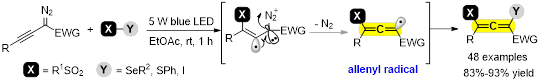 Synthesis of Tetrasubstituted Allenes via Visible-Light-Promoted Radical 1,3-Difunctionalization of Alkynyl Diazo Compounds.
